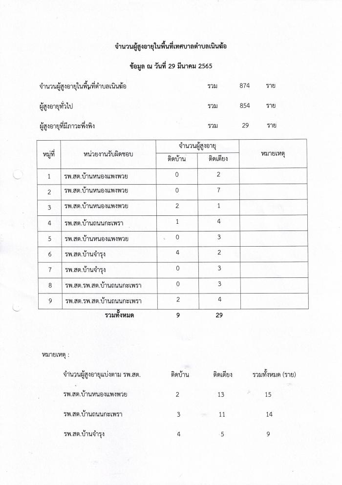จำนวนผู้สูงอายุในพื้นที่เทศบาลตำบลเนินฆ้อ