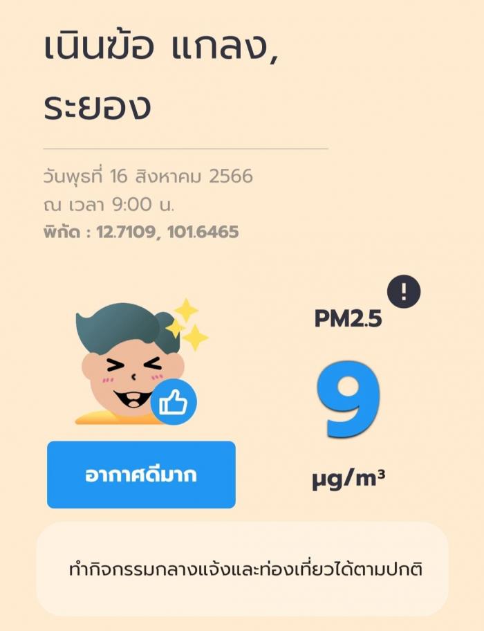 รายงานปริมาณฝุ่น PM 2.5 ตำบลเนินฆ้อ อำเภอแกลง จังหวัดระยอง