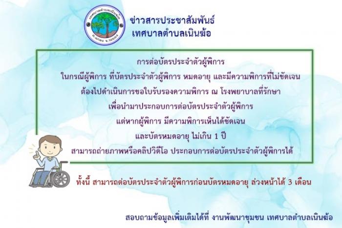 ข่าวสารประชาสัมพันธ์ เรื่อง การต่อบัตรประจำตัวผู้พิการ