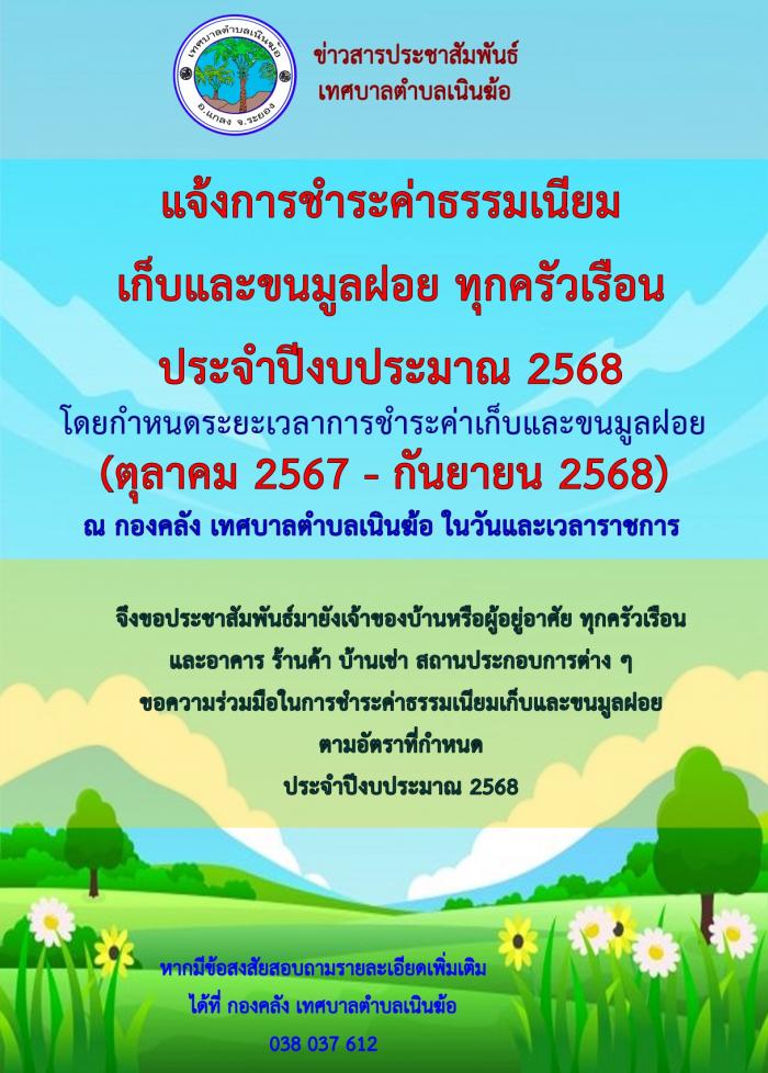 ข่าวสารประชาสัมพันธ์ เรื่อง แจ้งการชำระค่าธรรมเนียมเก็บและขนมูลฝอย ทุกครัวเรือน ประจำปีงบประมาณ 2568