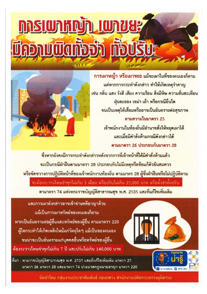 เผาหญ้าและขยะ มีความผิดทางกฏหมาย