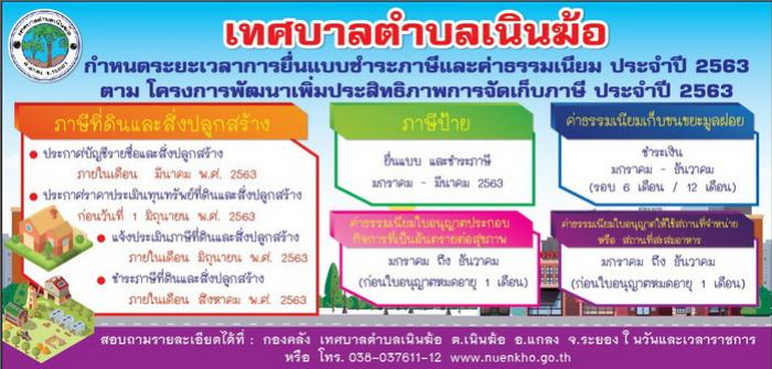 กำหนดการยื่นแบบ และการชำระภาษี ค่าธรรมเนียมต่างๆ ของเทศบาลตำบลเนินฆ้อ