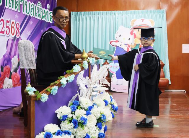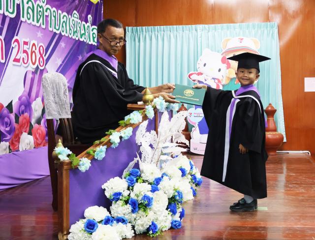 • หน้าแรก > • อัลบั้มภาพกิจกรรม > พิธีมอบวุฒิบัตรบัณฑิตน้อย ศูนย์พัฒนาเด็กเล็กเทศบาลตำบลเนินฆ้อ ประจำปีการศึกษา 2568