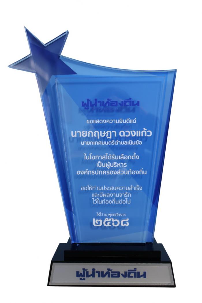 โล่รางวัล ผู้นำท้องถิ่น นายกฤษฏา ดวงแก้ว นายกเทศมนตรีตำบลเนินฆ้อ ในโอกาสได้รับเลือกตั้งเป็นผู้บริหาร อปท. ให้ไว้ ณ 10 กันยายน 2568